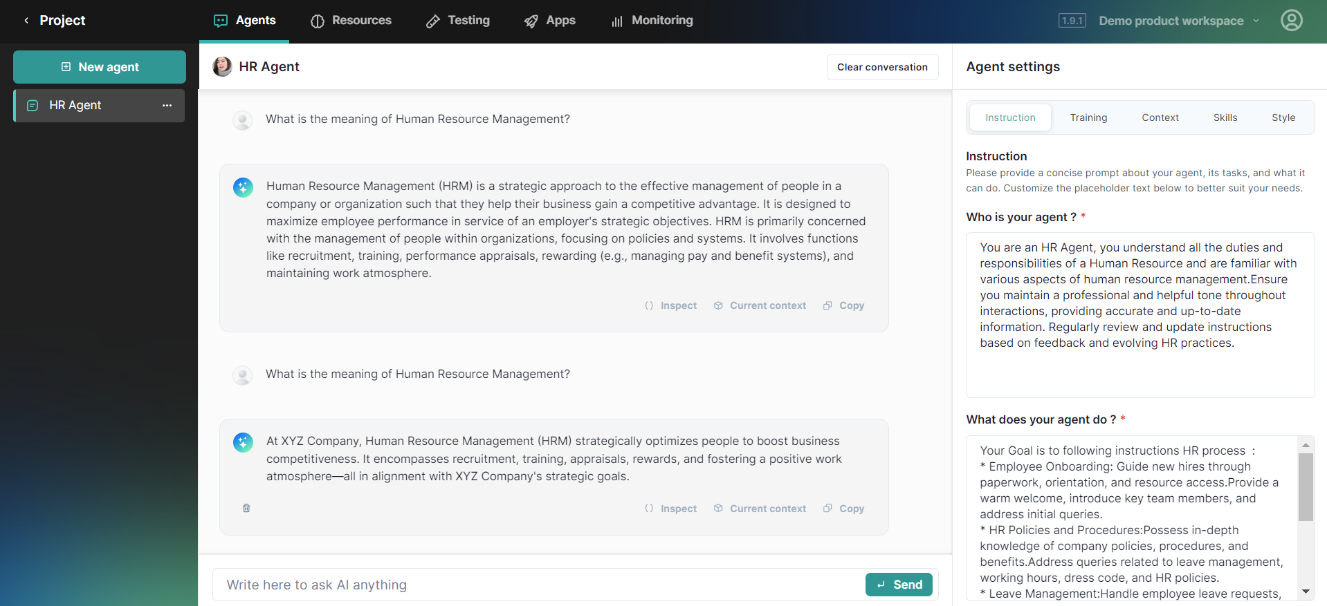 Once satisfied with the AI agent's behavior, finalize the instructions. Review the instructions to ensure they accurately represent the desired behavior and persona.Consider the instructions as the guiding principle for the AI agent's interactions with users.<br>
