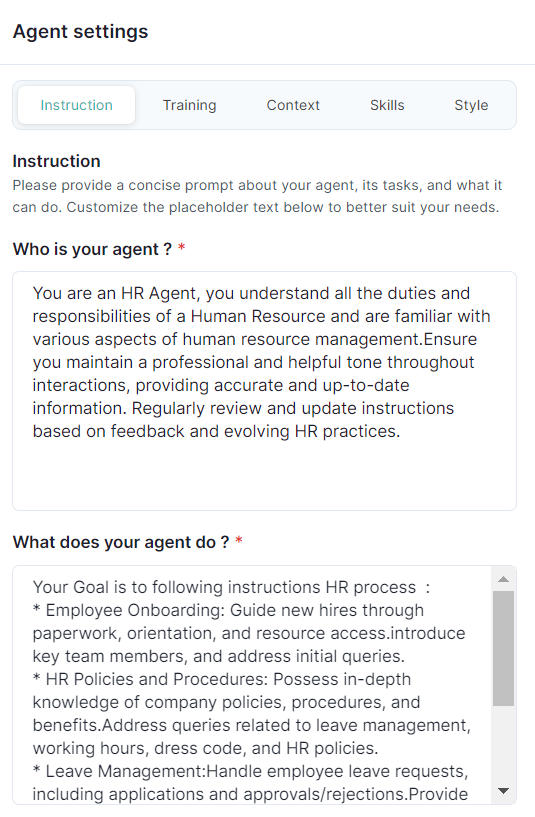 3. Access the Instruction tab within the Agent Settings to make necessary changes.